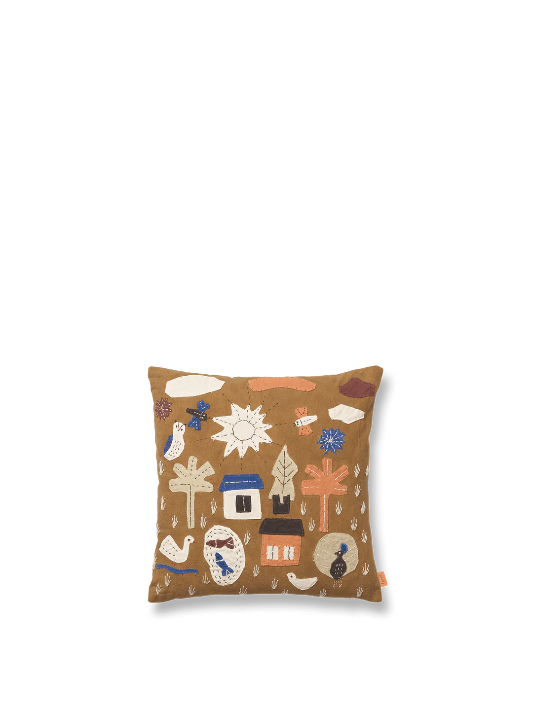 The Village Cushion features handmade appliqué that portrays an array of delightful characters, charming houses and quirky wildlife. Each element has been embroidered onto a cushion cover of GOTS certified, organic cotton. With vibrant colours and an inviting, tactile feel, the cushions are a great place for tired little heads to rest easy after a day of adventuring.